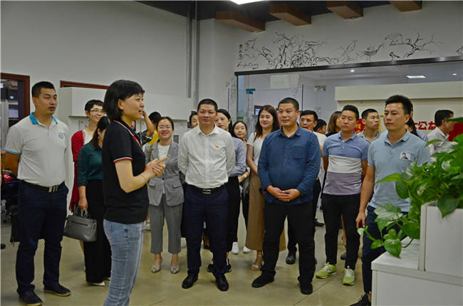 7月29日下午,东莞市南城街道雅园社区党工委书记邓伟平率队社区16名党员干部莅临盟大集团参观交流。盟大集团总裁李实、盟大常务副总经理姚志向等接待了来访交流团。