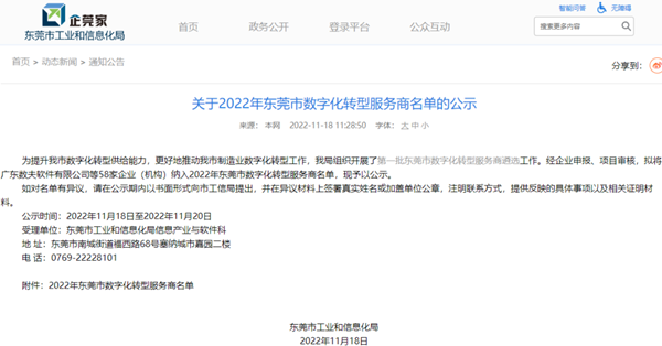 经严格审核,盟大集团、数据互联、东莞移动、东莞联通等58家企业(机构)纳入了2022年东莞市数字化转型服务商名单。